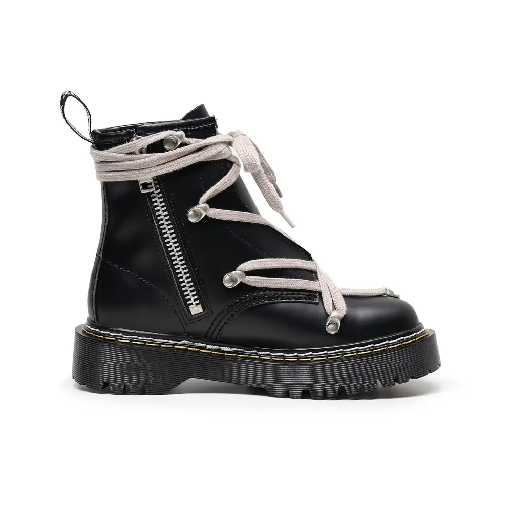Yuvarlak burun şekli ve kalın topuk (3-5 cm) ek konfor ve stil sunar. Orta yükseklikte bilek ve pratik yan fermuar, şıklığı fonksiyonellikle birleştirir.