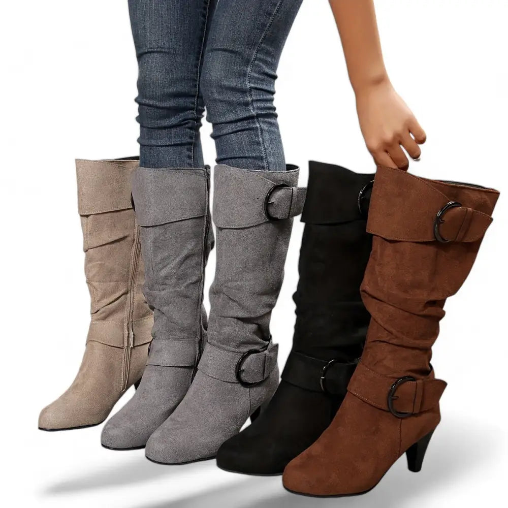 Modaya uygun metal detaylar ve tokalı tasarımı ile bu botlar, sadece bacakları uzatmakla kalmaz, aynı zamanda sizi sıcak tutar. Askeri stilin ve çok yönlülüğün keyfini çıkarın!